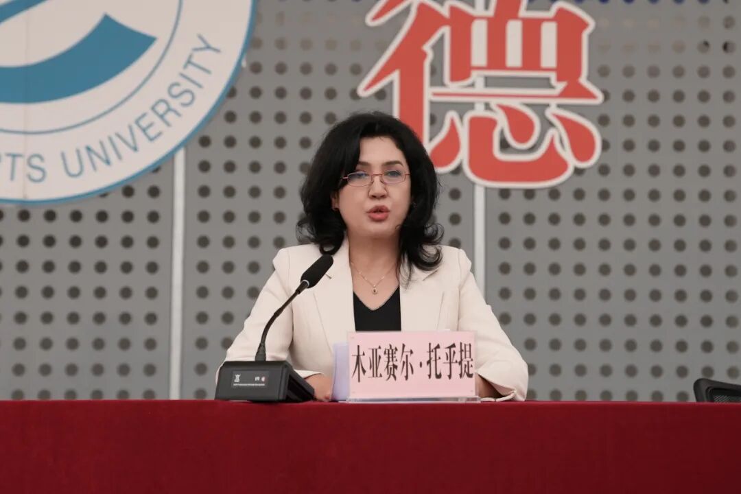 9月19日上午,新疆艺术学院举行2025级新生军训总结表彰大会。学校党委书记章立新,领导班子成员木亚赛尔·托乎提、钱玲、全立新、陈建平、周达疆、刘昌海、杨帆及承训部队官兵出席大会。各学院及相关职能部门负责人、辅导员、班主任及2025级新生参加大会。学校党委副书记樊文平主持会议。