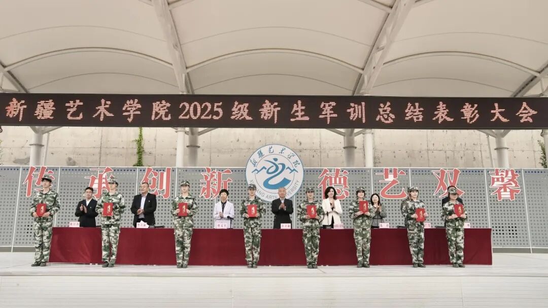 密相连,坚定马克思主义信仰,培养和践行社会主义核心价值观,进一步铸牢中华民族共同体意识,自觉维护民族团结、社会稳定和国家统一。二要与时俱进,练就过硬本领,用军训中淬炼的坚韧意志潜心艺术创作。站在科技革命与国家战略的历史节点,同学们要注重培养自己的思辨创新能力、团队协作能力和社会实践能力等,学会正确处理专业学习与通识教育、理论知识与实践活动、就业需求与长远发展之间的关系,潜心艺术创作,用动人的文艺作品讲好新时代新疆故事。三要砥砺奋斗,传承新艺精神,以军训中涵养的进取品格引领艺术青春。同学们要把军训和入学教育期间养成的良好品格和健康习惯延续到今后的学习生活中,秉承“传承创新、德艺双馨”校训,践行新艺精神,将奋斗的力量融入学校内涵建设高质量发展,努力成长为具有优良思想品格、深厚人文修养、扎实专业能力、强烈创新意识、宽广国际视野的高素质文艺人才。