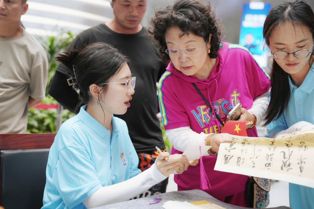 为现场旅客赠送书法作品