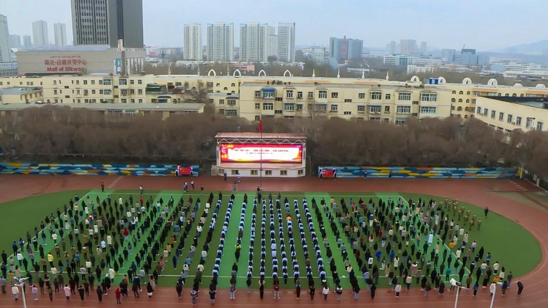 晨光熹微,轻风拂面,3月29日上午,学校举行“学党史 强思想 促团结”主题升旗仪式。伴随着雄壮的国歌声,鲜艳的五星红旗冉冉升起,师生代表庄严肃立,向国旗行注目礼。升旗仪式上,传媒学院党总支书记克里木·艾沙讲话,学生代表2019级播音与主持艺术专业学生唐一心发言。