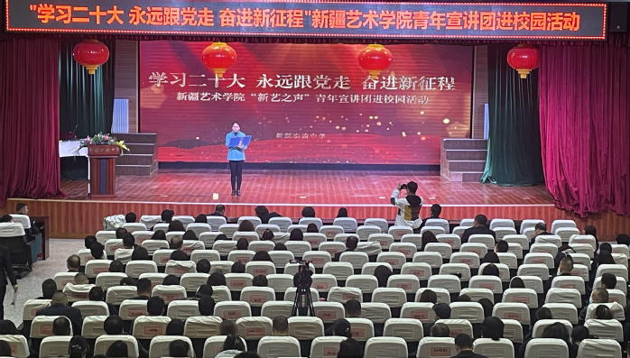 5月5日,我校“新艺之声”青年宣讲团应南湾街街道和新疆实验中学的邀请走进社区和校园进行党的二十大精神的宣讲并围绕“奋进新时代”主题成就展进行成果汇报。自治区党委组织部组织二处、乌鲁木齐市委组织部组织二科相关负责同志到会指导。我校团委、传媒学院20余名师生参加此次活动。