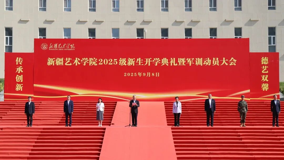 9月8日上午,新疆艺术学院举行2025级新生开学典礼暨军训动员大会。学校党委书记章立新出席并讲话,学校领导班子成员钱玲、全立新、陈建平、周达疆、刘昌海、杨帆,承训部队官兵、各学院及相关职能部门负责人、辅导员、班主任及2025级新生参加大会。学校党委副书记樊文平主持会议。