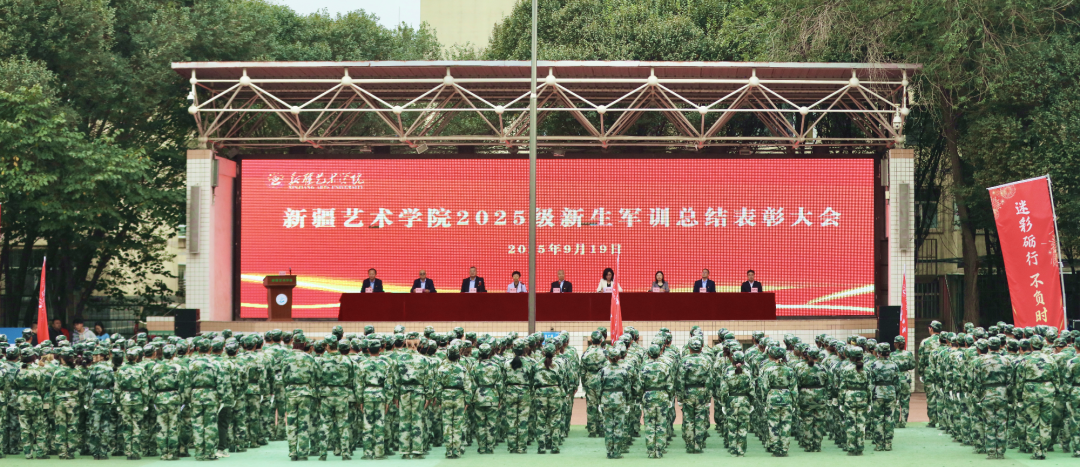 密相连,坚定马克思主义信仰,培养和践行社会主义核心价值观,进一步铸牢中华民族共同体意识,自觉维护民族团结、社会稳定和国家统一。二要与时俱进,练就过硬本领,用军训中淬炼的坚韧意志潜心艺术创作。站在科技革命与国家战略的历史节点,同学们要注重培养自己的思辨创新能力、团队协作能力和社会实践能力等,学会正确处理专业学习与通识教育、理论知识与实践活动、就业需求与长远发展之间的关系,潜心艺术创作,用动人的文艺作品讲好新时代新疆故事。三要砥砺奋斗,传承新艺精神,以军训中涵养的进取品格引领艺术青春。同学们要把军训和入学教育期间养成的良好品格和健康习惯延续到今后的学习生活中,秉承“传承创新、德艺双馨”校训,践行新艺精神,将奋斗的力量融入学校内涵建设高质量发展,努力成长为具有优良思想品格、深厚人文修养、扎实专业能力、强烈创新意识、宽广国际视野的高素质文艺人才。