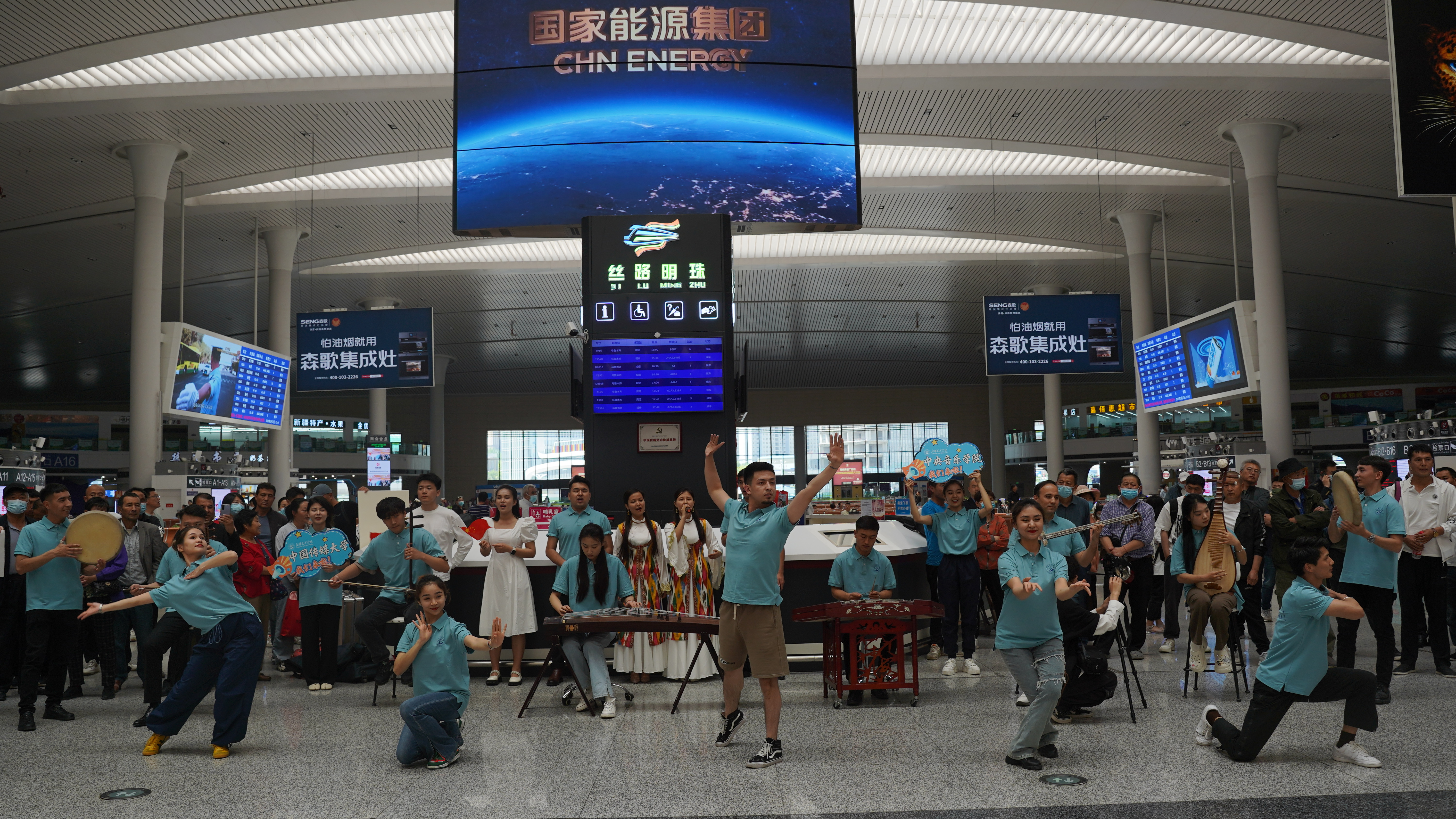 出发前,我校“石榴籽·祖国行”融情实践团的师生们还在乌鲁木齐高铁站表演了歌舞快闪。快闪热情奔放,充分展现了新艺学子积极向上的青春正能量,深深吸引了来自全国各地的游客。