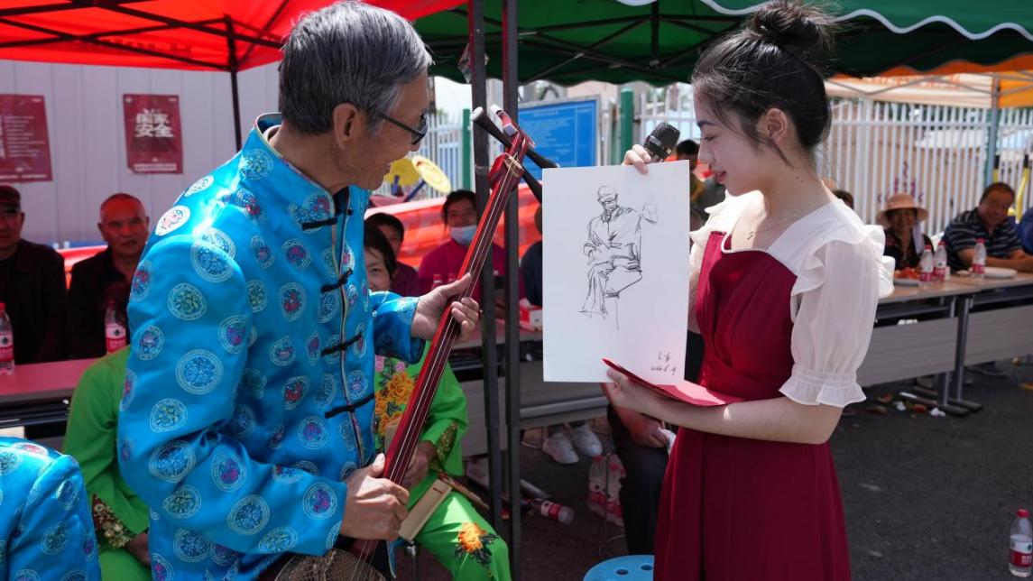 “三下乡”社会实践服务团学生为当地群众画肖像